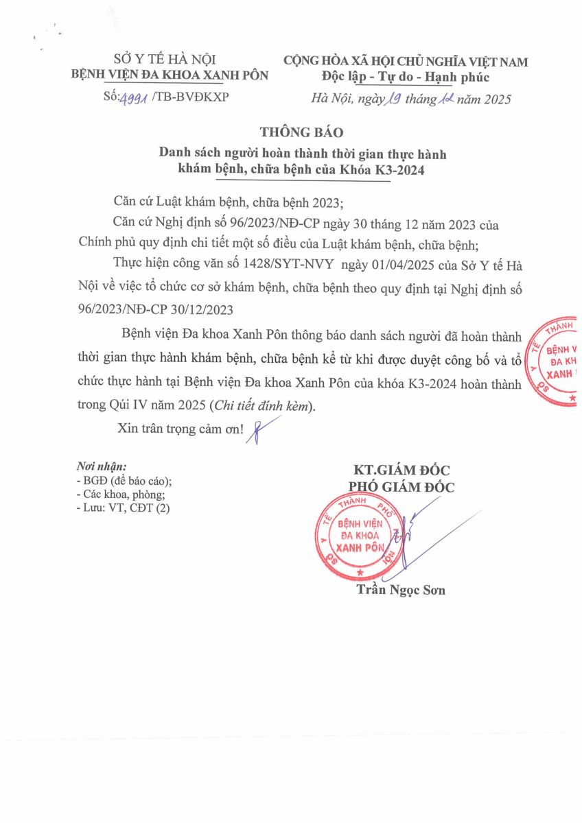- Danh sách người hoàn thành thời gian thực hành khám bệnh, chữa bệnh của Khoá K3-2024