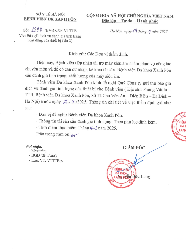Báo giá dịch vụ đánh giá tình trạng thiết bị lần 2 1298-2025