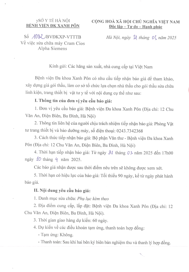 Hôm nay tôi mạnh dạn viết thư này đầu tiên tôi cảm ơn BLĐ Bệnh viện Xanh Pôn đã đào tạo được các BS có tâm huyết như các BS 2 khoa trên và cho tôi gửi lời cảm ơn đến các BS và mong BV Xanh Pôn sẽ còn nhiều BS như thế nữa. Đúng như lời Bác Hồ dạy 'Lương y như mẹ hiền' Xin chân thành cảm ơn BV