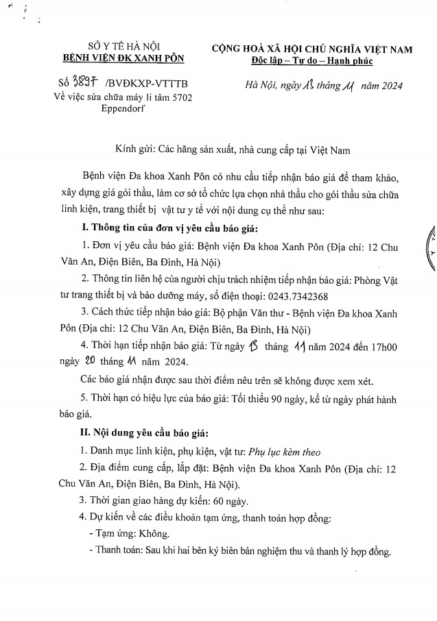 Hôm nay tôi mạnh dạn viết thư này đầu tiên tôi cảm ơn BLĐ Bệnh viện Xanh Pôn đã đào tạo được các BS có tâm huyết như các BS 2 khoa trên và cho tôi gửi lời cảm ơn đến các BS và mong BV Xanh Pôn sẽ còn nhiều BS như thế nữa. Đúng như lời Bác Hồ dạy 'Lương y như mẹ hiền' Xin chân thành cảm ơn BV