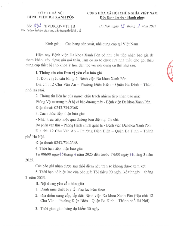 Báo giá trang thiết bị y tế 863-2025