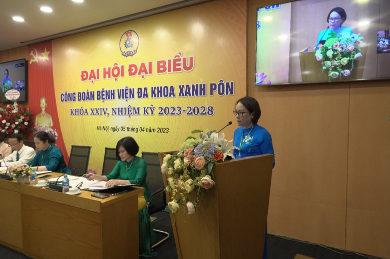 Phát biểu chỉ đạo tại Đại hội, đồng chí Trịnh Tố Tâm, Chủ tịch Công đoàn ngành Y tế Hà Nội, đồng chí Nguyễn Đức Long, Giám đốc Bệnh viện Đa khoa Xanh Pôn đã ghi nhận, biểu dương và chúc mừng những thành tích của Công đoàn Bệnh viện đã đạt được trong nhiệm kỳ qua.