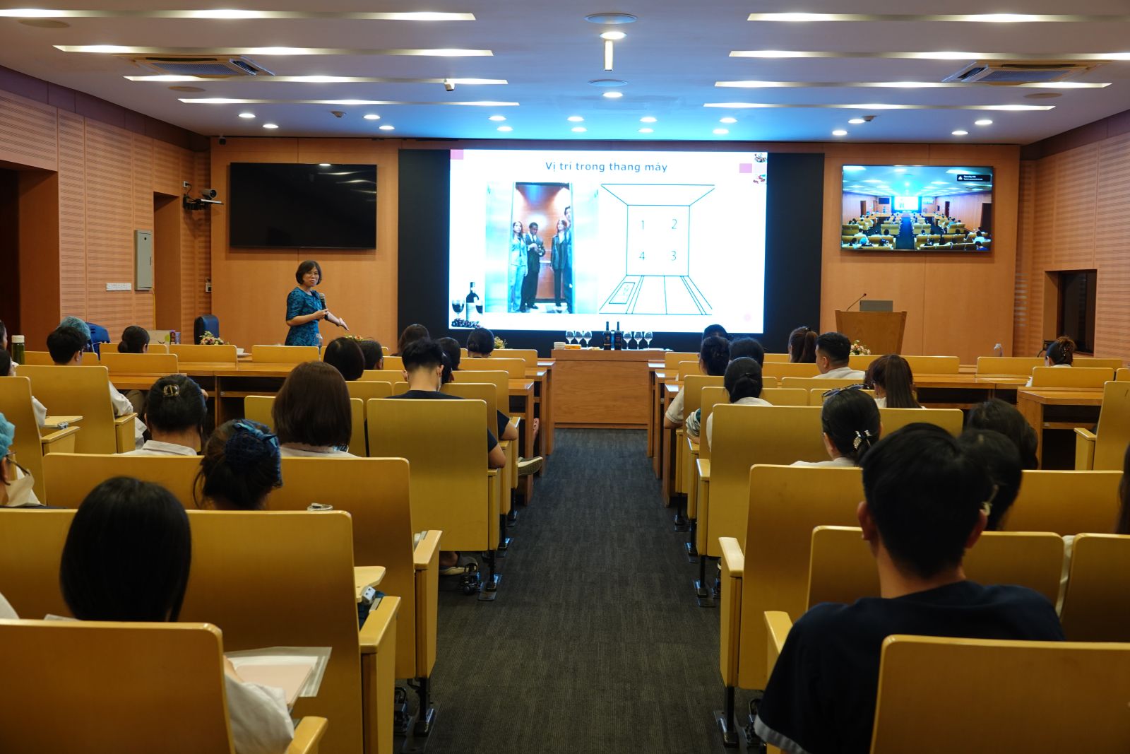 - Lớp 1: Giao tiếp giữa nhân viên y tế với nhau và giao tiếp giữa nhân viên y tế với người bệnh. Học viên tham dự gồm nhân viên từ các khoa phòng trong bệnh viện, ưu tiên nhân viên y tế có thời gian công tác trên 2 năm.