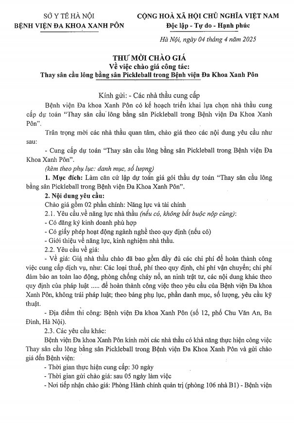 Chào giá công tác thay san cầu lông bằng sân Pickleball 4-4-2025