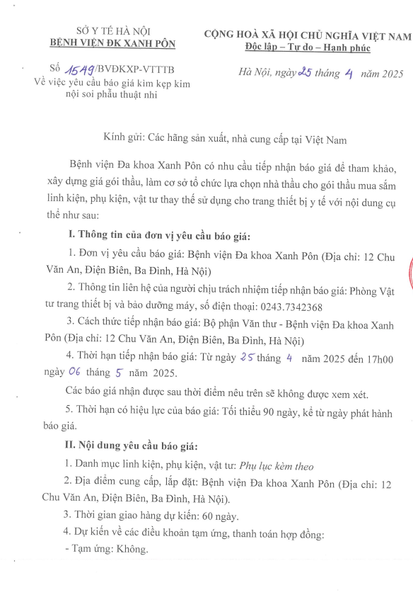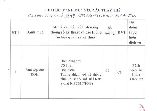 Chào giá cung cấp kìm kẹp kim nội soi phẫu thuật nhi 1549-2025
