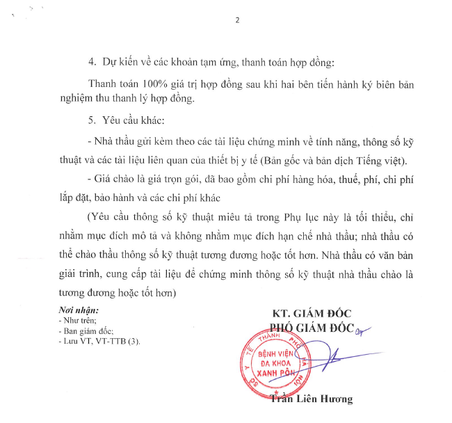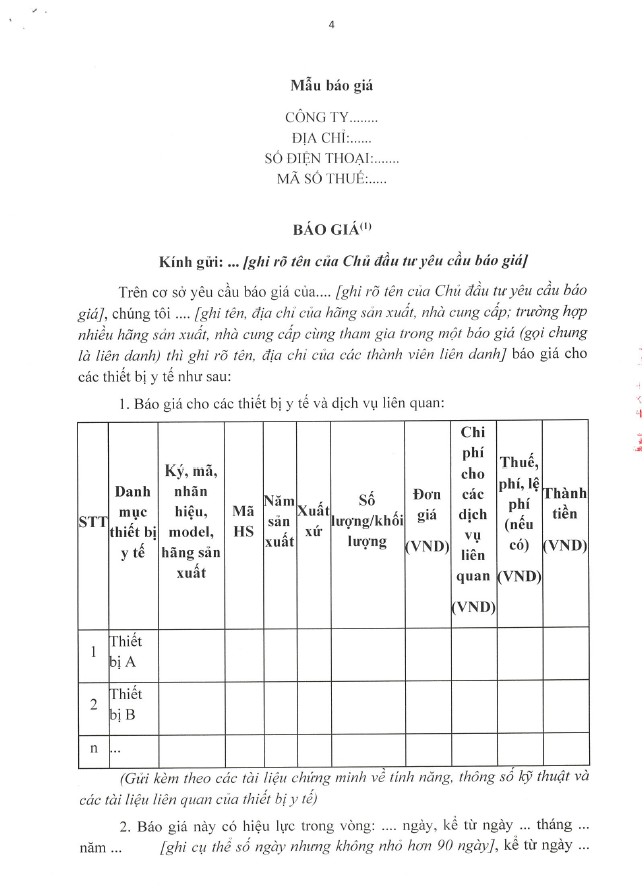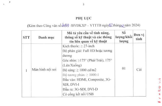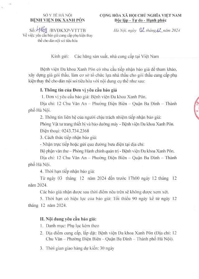 Chào giá cung cấp phụ kiện thay thế cho dàn nội soi tiêu hóa 4169-2024