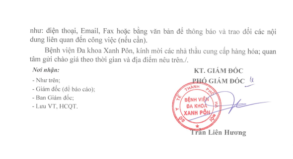Hôm nay tôi mạnh dạn viết thư này đầu tiên tôi cảm ơn BLĐ Bệnh viện Xanh Pôn đã đào tạo được các BS có tâm huyết như các BS 2 khoa trên và cho tôi gửi lời cảm ơn đến các BS và mong BV Xanh Pôn sẽ còn nhiều BS như thế nữa. Đúng như lời Bác Hồ dạy 'Lương y như mẹ hiền' Xin chân thành cảm ơn BV