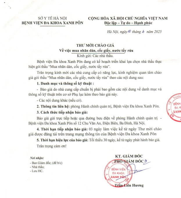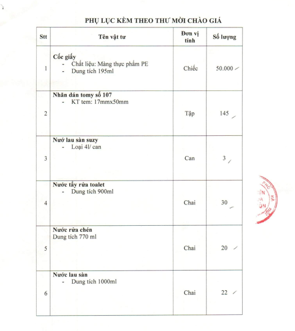 Chào giá mua cốc giấy, nhãn dán, nước tẩy rửa 10.6.2025