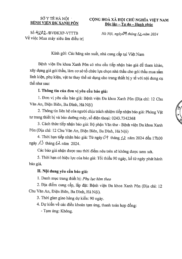 Chào giá mua máy siêu âm điều trị 4202-2024