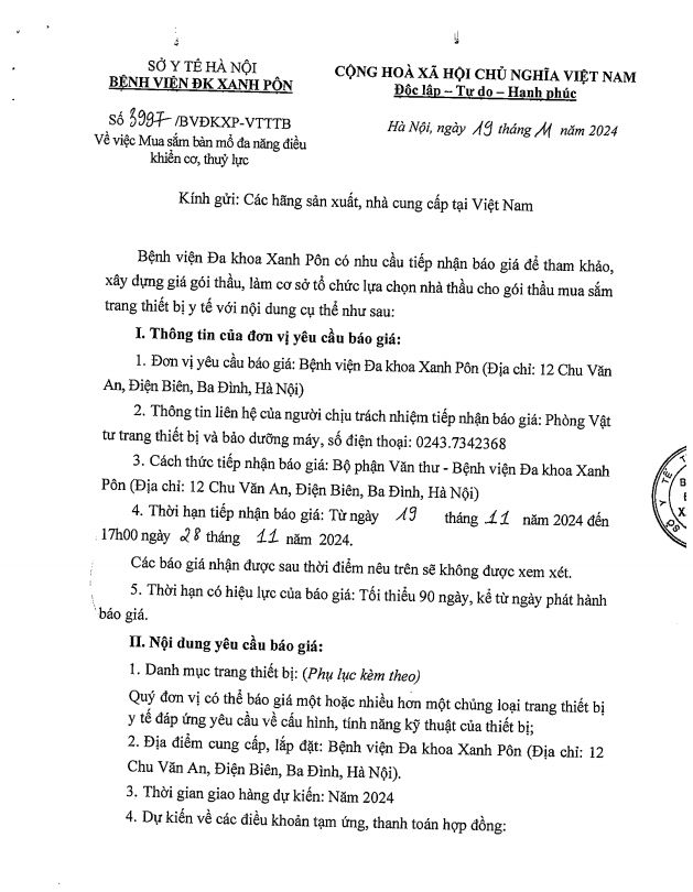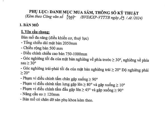 Chào giá mua sắm bàn mổ đa năng điều khiển cơ, thủy lực 3997-2024