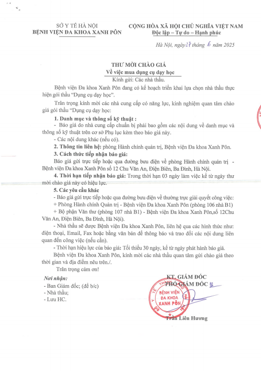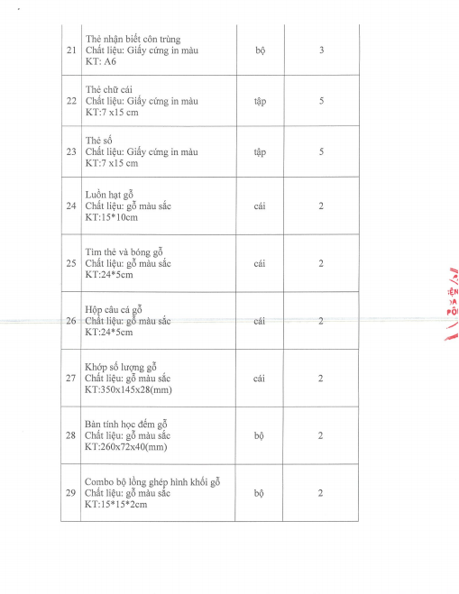 Chào giá mua sắm dụng cụ dạy học 27-06-2025