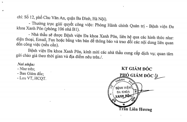 Hôm nay tôi mạnh dạn viết thư này đầu tiên tôi cảm ơn BLĐ Bệnh viện Xanh Pôn đã đào tạo được các BS có tâm huyết như các BS 2 khoa trên và cho tôi gửi lời cảm ơn đến các BS và mong BV Xanh Pôn sẽ còn nhiều BS như thế nữa. Đúng như lời Bác Hồ dạy 'Lương y như mẹ hiền' Xin chân thành cảm ơn BV
