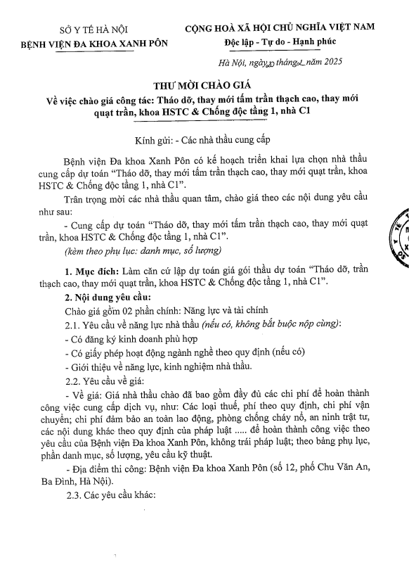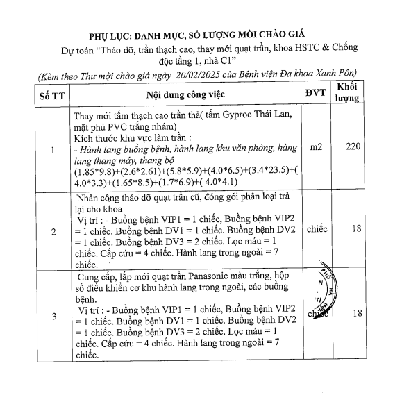 Chào giá tháo dỡ thay thế trần thạch cao, thay mới quạt trần tầng 1 nhà C1