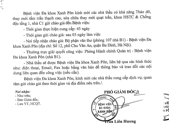 Hôm nay tôi mạnh dạn viết thư này đầu tiên tôi cảm ơn BLĐ Bệnh viện Xanh Pôn đã đào tạo được các BS có tâm huyết như các BS 2 khoa trên và cho tôi gửi lời cảm ơn đến các BS và mong BV Xanh Pôn sẽ còn nhiều BS như thế nữa. Đúng như lời Bác Hồ dạy 'Lương y như mẹ hiền' Xin chân thành cảm ơn BV