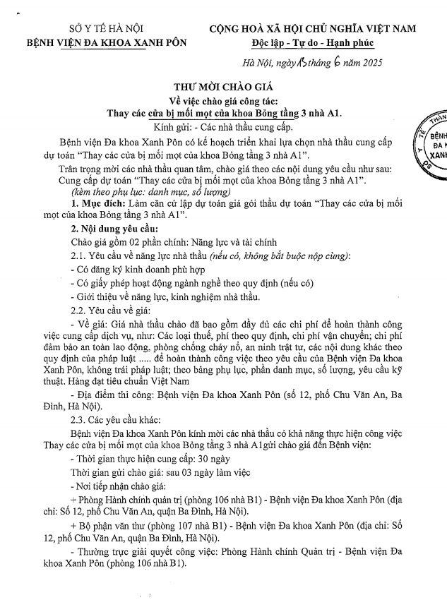 Chào giá thay cửa mối mọt khoa Bỏng 13-6-2025