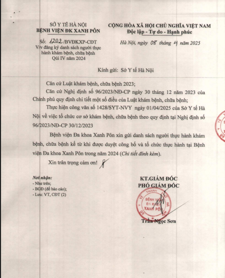 Hôm nay tôi mạnh dạn viết thư này đầu tiên tôi cảm ơn BLĐ Bệnh viện Xanh Pôn đã đào tạo được các BS có tâm huyết như các BS 2 khoa trên và cho tôi gửi lời cảm ơn đến các BS và mong BV Xanh Pôn sẽ còn nhiều BS như thế nữa. Đúng như lời Bác Hồ dạy 'Lương y như mẹ hiền' Xin chân thành cảm ơn BV