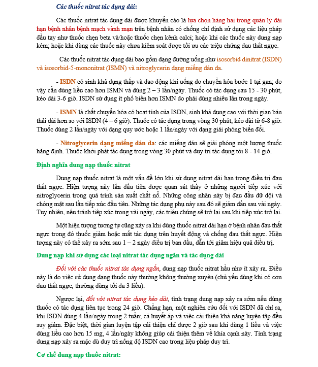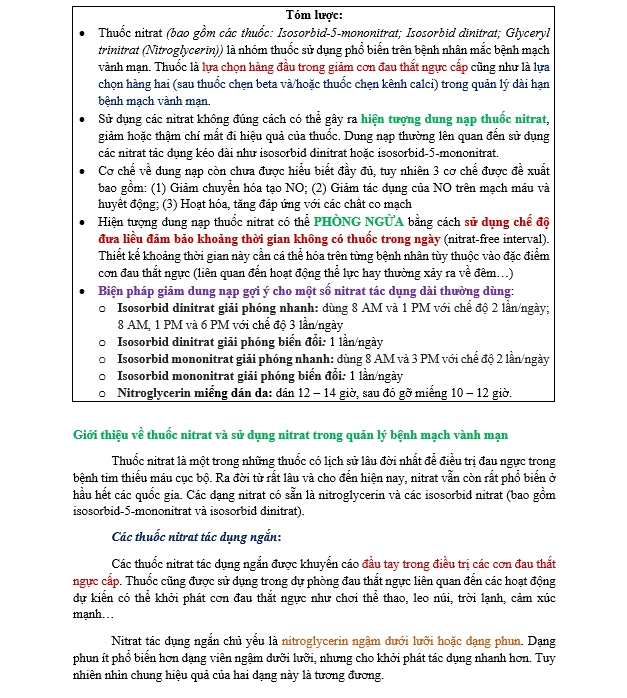 Dung nạp thuốc nitrat khi sử dụng trên bệnh nhân bệnh mạch vành mạn và cách phòng ngừa