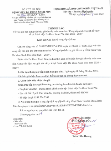 Gia hạn chào giá mua sắm dịch vụ giặt đồ vải y tế 2999-2025