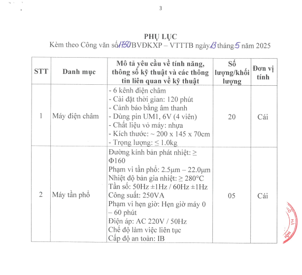 Mời báo giá cung cấp trang thiết bị y tế 13-5-2025
