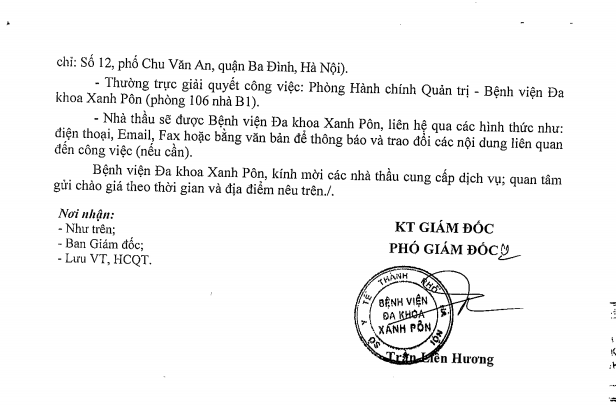 Hôm nay tôi mạnh dạn viết thư này đầu tiên tôi cảm ơn BLĐ Bệnh viện Xanh Pôn đã đào tạo được các BS có tâm huyết như các BS 2 khoa trên và cho tôi gửi lời cảm ơn đến các BS và mong BV Xanh Pôn sẽ còn nhiều BS như thế nữa. Đúng như lời Bác Hồ dạy 'Lương y như mẹ hiền' Xin chân thành cảm ơn BV