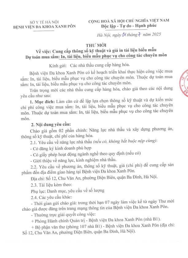 Mời chào cung cấp thông số kỹ thuật và giá in tài liệu biểu mẫu