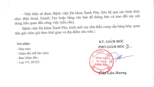 Hôm nay tôi mạnh dạn viết thư này đầu tiên tôi cảm ơn BLĐ Bệnh viện Xanh Pôn đã đào tạo được các BS có tâm huyết như các BS 2 khoa trên và cho tôi gửi lời cảm ơn đến các BS và mong BV Xanh Pôn sẽ còn nhiều BS như thế nữa. Đúng như lời Bác Hồ dạy 'Lương y như mẹ hiền' Xin chân thành cảm ơn BV