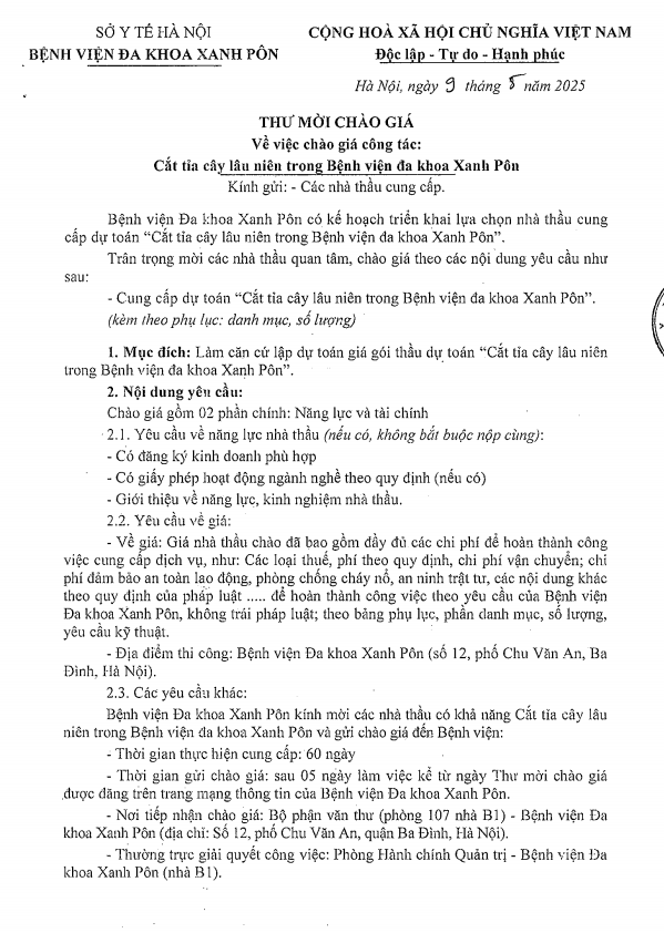 Mời chào giá cắt tỉa cây lâu niên 9-5-2025