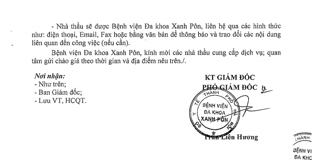 Hôm nay tôi mạnh dạn viết thư này đầu tiên tôi cảm ơn BLĐ Bệnh viện Xanh Pôn đã đào tạo được các BS có tâm huyết như các BS 2 khoa trên và cho tôi gửi lời cảm ơn đến các BS và mong BV Xanh Pôn sẽ còn nhiều BS như thế nữa. Đúng như lời Bác Hồ dạy 'Lương y như mẹ hiền' Xin chân thành cảm ơn BV