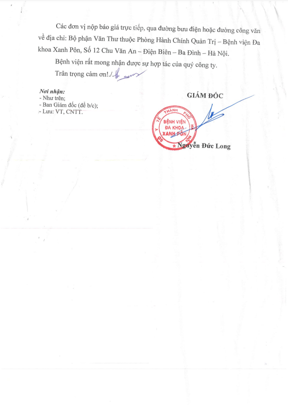 Hôm nay tôi mạnh dạn viết thư này đầu tiên tôi cảm ơn BLĐ Bệnh viện Xanh Pôn đã đào tạo được các BS có tâm huyết như các BS 2 khoa trên và cho tôi gửi lời cảm ơn đến các BS và mong BV Xanh Pôn sẽ còn nhiều BS như thế nữa. Đúng như lời Bác Hồ dạy 'Lương y như mẹ hiền' Xin chân thành cảm ơn BV
