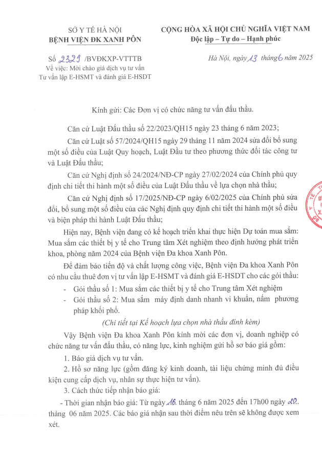 Mời chào giá dịch vụ lập E_HSMT và đánh giá E_HSDT 2329-2025