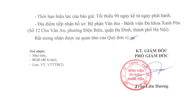 Hôm nay tôi mạnh dạn viết thư này đầu tiên tôi cảm ơn BLĐ Bệnh viện Xanh Pôn đã đào tạo được các BS có tâm huyết như các BS 2 khoa trên và cho tôi gửi lời cảm ơn đến các BS và mong BV Xanh Pôn sẽ còn nhiều BS như thế nữa. Đúng như lời Bác Hồ dạy 'Lương y như mẹ hiền' Xin chân thành cảm ơn BV