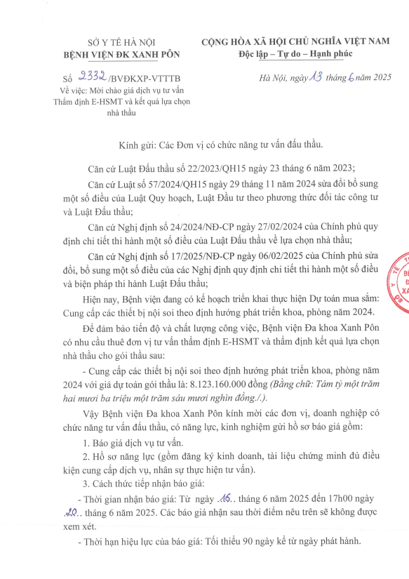 Mời chào giá dịch vụ thẩm định E-HSMT và kết quả lựa chọn nhà thầu 2332-2025