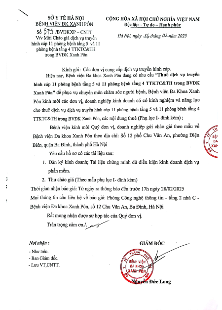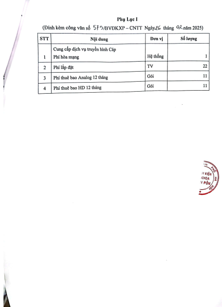 Mời chào giá - Dịch vụ truyền hình cáp - CV 575 - 2025