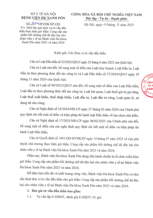 Mời chào giá dịch vụ tư vấn đấu thầu 2674-2025