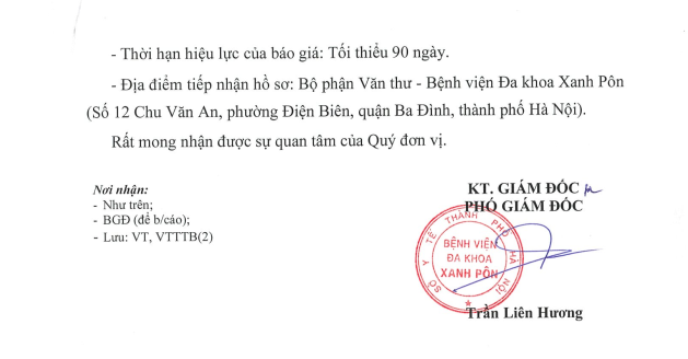 Hôm nay tôi mạnh dạn viết thư này đầu tiên tôi cảm ơn BLĐ Bệnh viện Xanh Pôn đã đào tạo được các BS có tâm huyết như các BS 2 khoa trên và cho tôi gửi lời cảm ơn đến các BS và mong BV Xanh Pôn sẽ còn nhiều BS như thế nữa. Đúng như lời Bác Hồ dạy 'Lương y như mẹ hiền' Xin chân thành cảm ơn BV