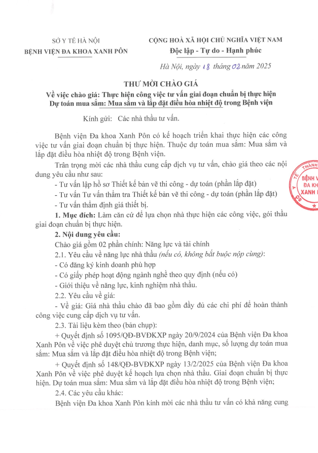 Mời chào giá dịch vụ tư vấn mua sắm điều hòa 2025