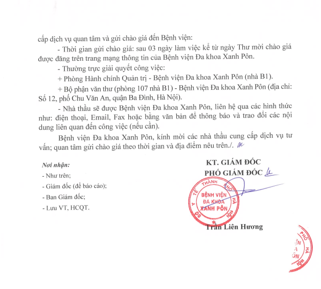 Hôm nay tôi mạnh dạn viết thư này đầu tiên tôi cảm ơn BLĐ Bệnh viện Xanh Pôn đã đào tạo được các BS có tâm huyết như các BS 2 khoa trên và cho tôi gửi lời cảm ơn đến các BS và mong BV Xanh Pôn sẽ còn nhiều BS như thế nữa. Đúng như lời Bác Hồ dạy 'Lương y như mẹ hiền' Xin chân thành cảm ơn BV