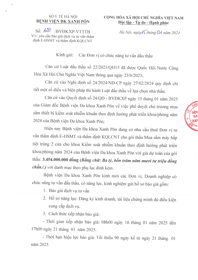 Mời chào giá dịch vụ tư vấn thẩm định E-HSMT và thẩm định kết quả lựa chọn nhà thầu 120-2025