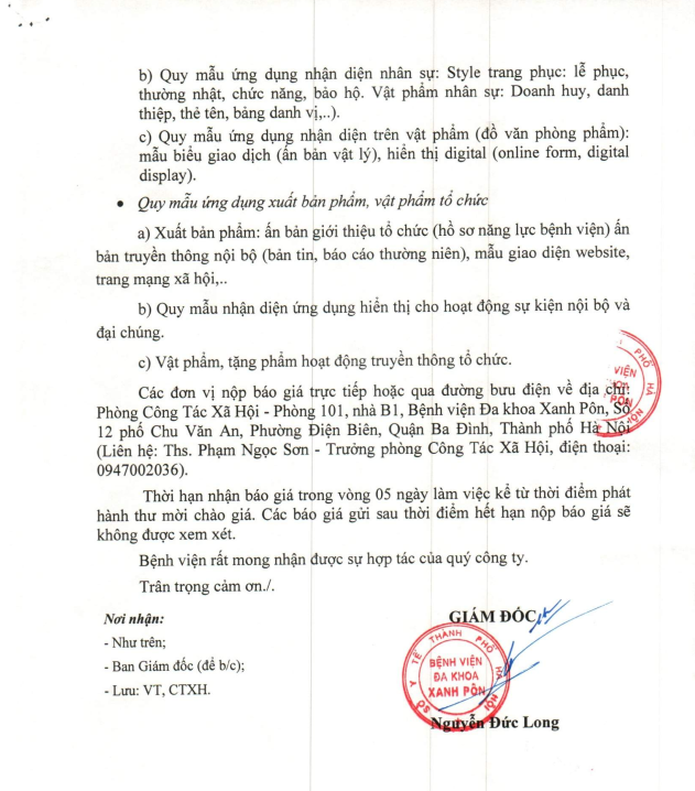 Hôm nay tôi mạnh dạn viết thư này đầu tiên tôi cảm ơn BLĐ Bệnh viện Xanh Pôn đã đào tạo được các BS có tâm huyết như các BS 2 khoa trên và cho tôi gửi lời cảm ơn đến các BS và mong BV Xanh Pôn sẽ còn nhiều BS như thế nữa. Đúng như lời Bác Hồ dạy 'Lương y như mẹ hiền' Xin chân thành cảm ơn BV
