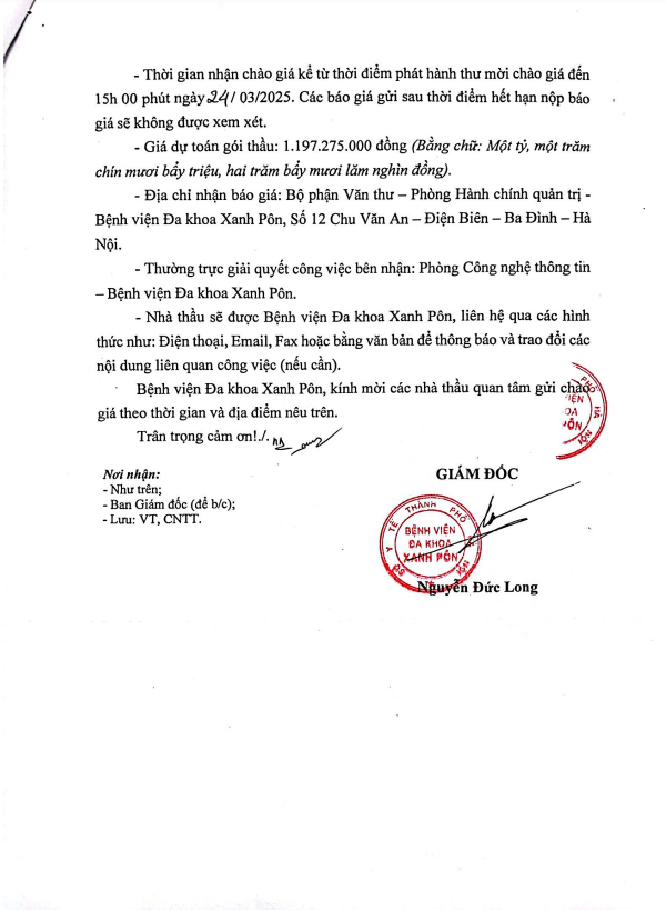 Hôm nay tôi mạnh dạn viết thư này đầu tiên tôi cảm ơn BLĐ Bệnh viện Xanh Pôn đã đào tạo được các BS có tâm huyết như các BS 2 khoa trên và cho tôi gửi lời cảm ơn đến các BS và mong BV Xanh Pôn sẽ còn nhiều BS như thế nữa. Đúng như lời Bác Hồ dạy 'Lương y như mẹ hiền' Xin chân thành cảm ơn BV