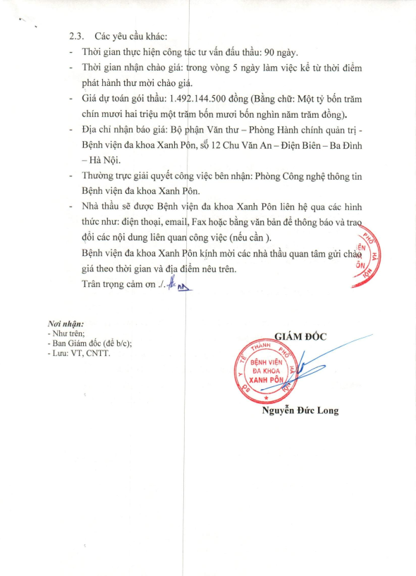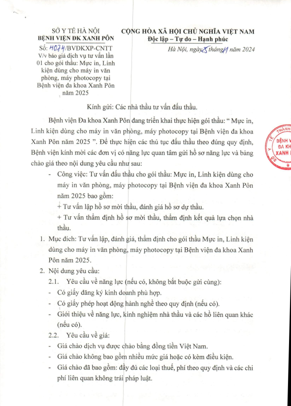 Mời chào giá - DV tư vấn cho gói thầu Mực in, linh kiện dung cho may sin văn phòng, máy photocopy - CV4074 - 2024