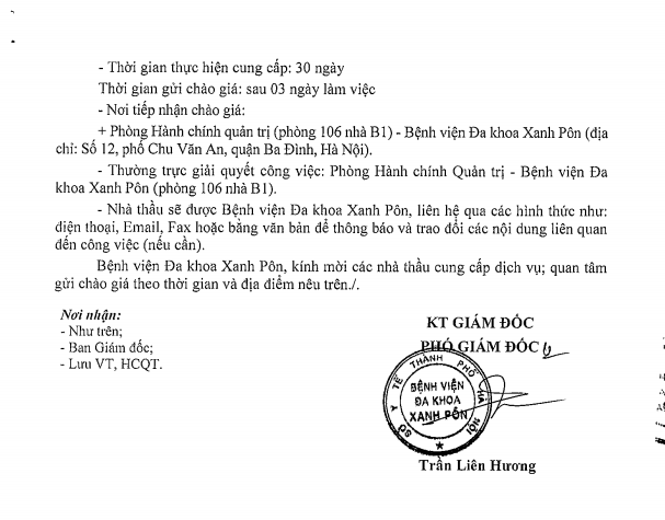Hôm nay tôi mạnh dạn viết thư này đầu tiên tôi cảm ơn BLĐ Bệnh viện Xanh Pôn đã đào tạo được các BS có tâm huyết như các BS 2 khoa trên và cho tôi gửi lời cảm ơn đến các BS và mong BV Xanh Pôn sẽ còn nhiều BS như thế nữa. Đúng như lời Bác Hồ dạy 'Lương y như mẹ hiền' Xin chân thành cảm ơn BV