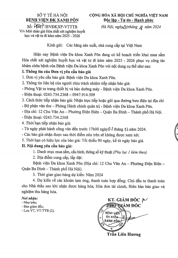 Hôm nay tôi mạnh dạn viết thư này đầu tiên tôi cảm ơn BLĐ Bệnh viện Xanh Pôn đã đào tạo được các BS có tâm huyết như các BS 2 khoa trên và cho tôi gửi lời cảm ơn đến các BS và mong BV Xanh Pôn sẽ còn nhiều BS như thế nữa. Đúng như lời Bác Hồ dạy 'Lương y như mẹ hiền' Xin chân thành cảm ơn BV