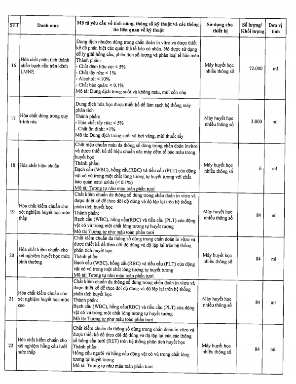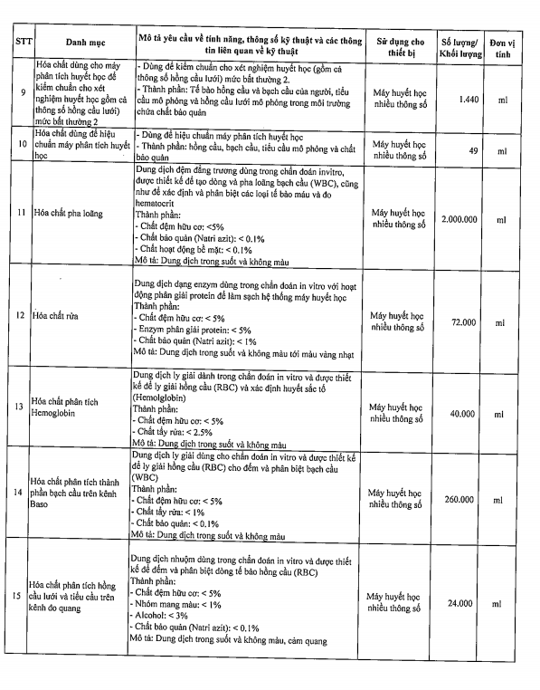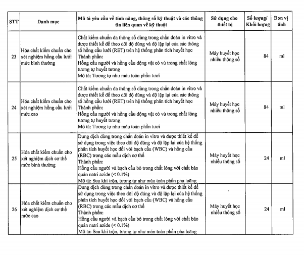 Mời chào giá hóa chất xét nghiệm huyết học 4047-2024