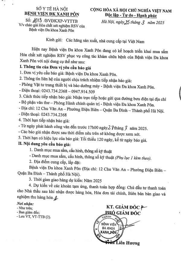 Mời chào giá hóa chất xét nghiệm RSV 1013-2025