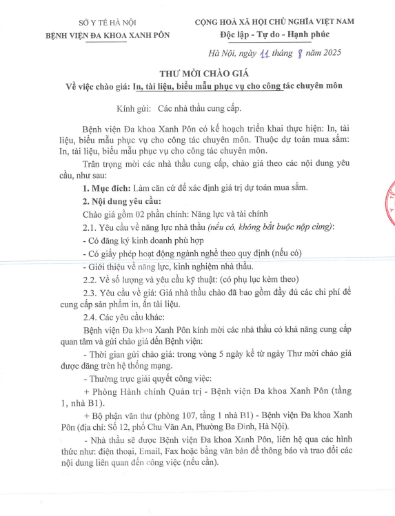 Mời chào giá in tài liệu biểu mẫu 11-8-2025