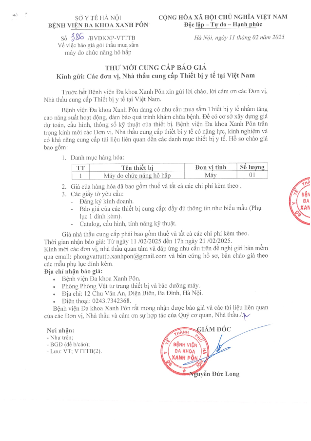 Mời chào giá máy đo chức năng hô hấp 386-2025