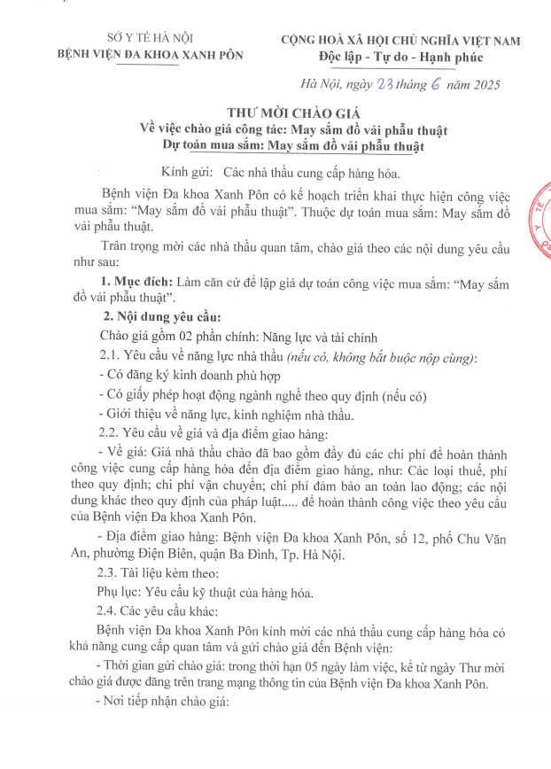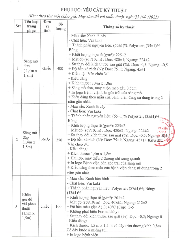 Mời chào giá may sắm đồ vải phẫu thuật 23-6-2025