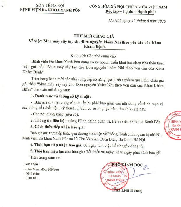 Mời chào giá máy sấy tay cho Đơn nguyên khám nhi theo yêu cầu 12-06-2025