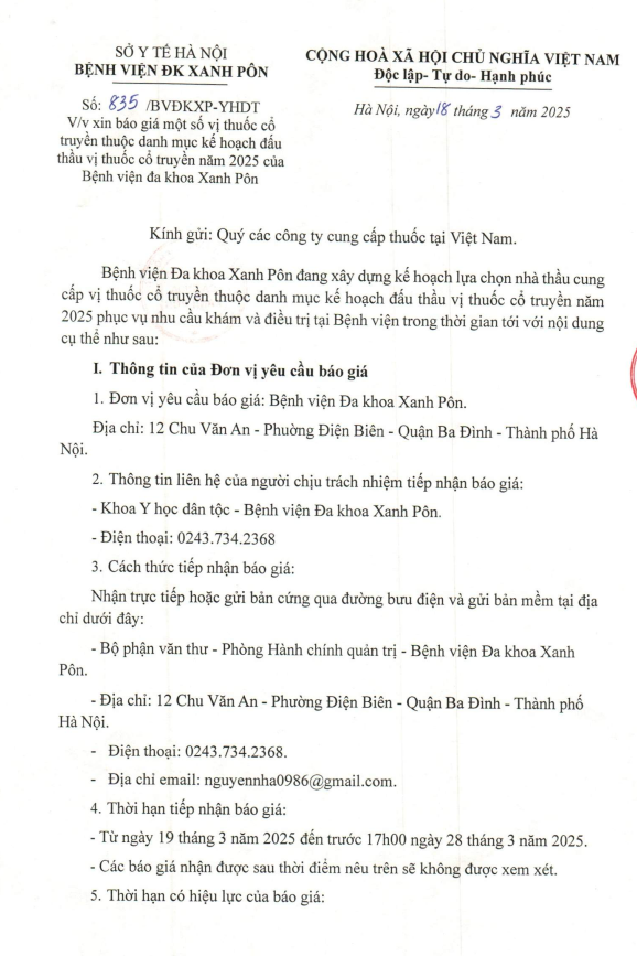 Mời chào giá một số vị thuốc cổ truyền 835-2025